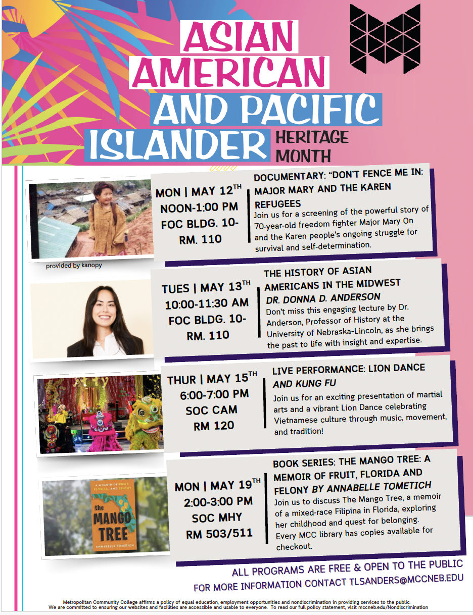 May is Asian American and Pacific Islander (AAPI) Heritage Month, here are a series of free and inclusive events hosted by Metropolitan Community College (MCC) to attend in celebration.