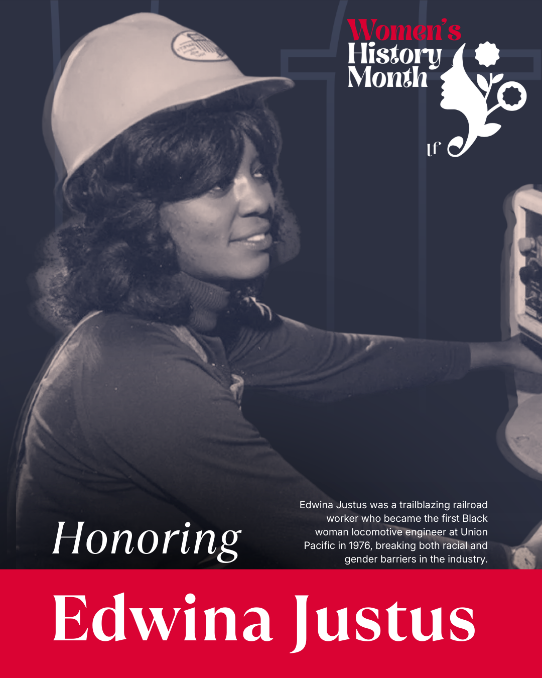In 1976, Edwina Justus climbed into the cab of a Union Pacific locomotive and became one of the first Black women in the United States to work as a locomotive engineer.