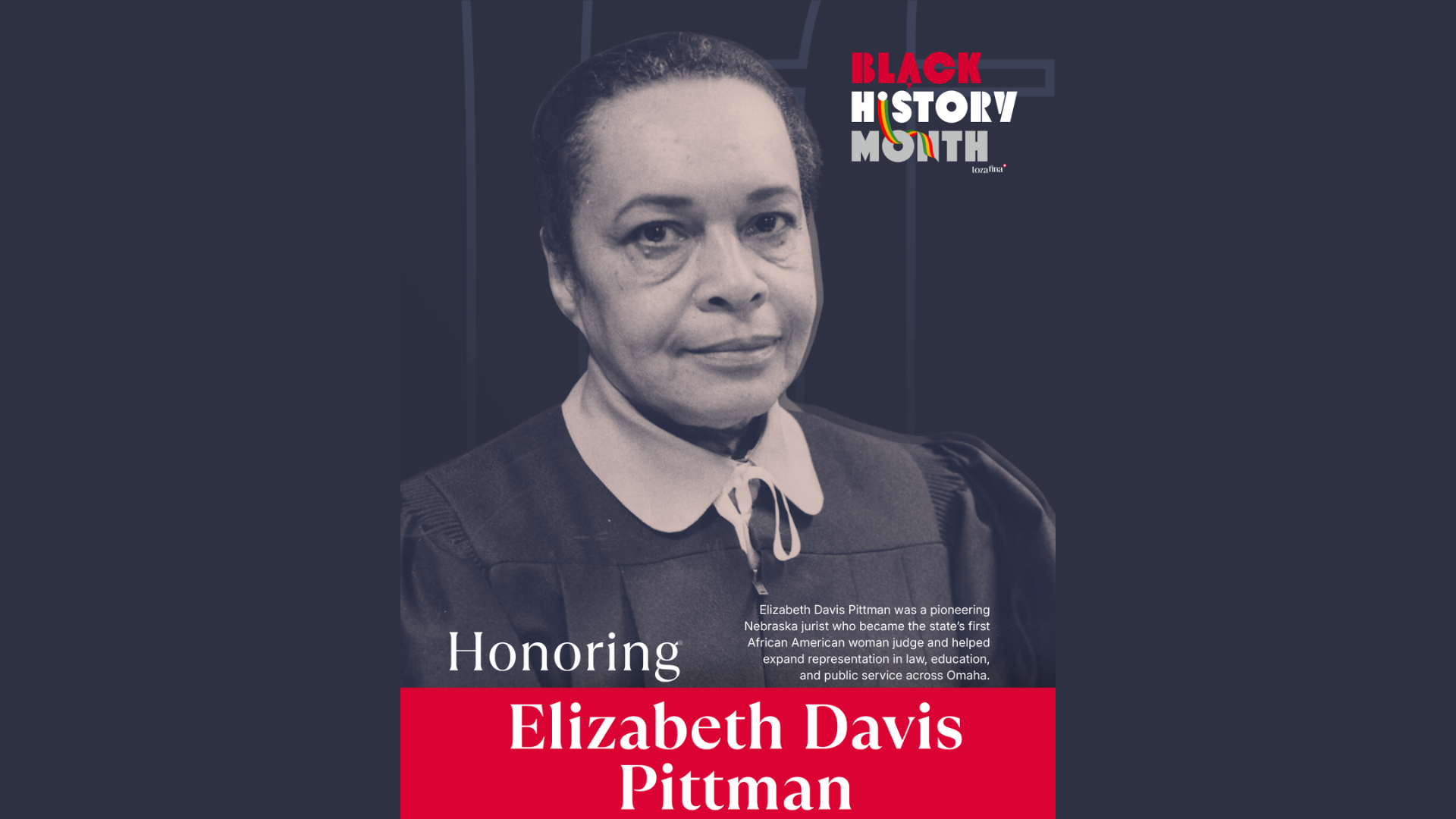 Elizabeth Davis Pittman (June 3, 1921 – April 8, 1998) broke barriers across Nebraska’s legal and civic landscape, becoming the first African American woman judge in the state and a pioneering force in Omaha’s public life.