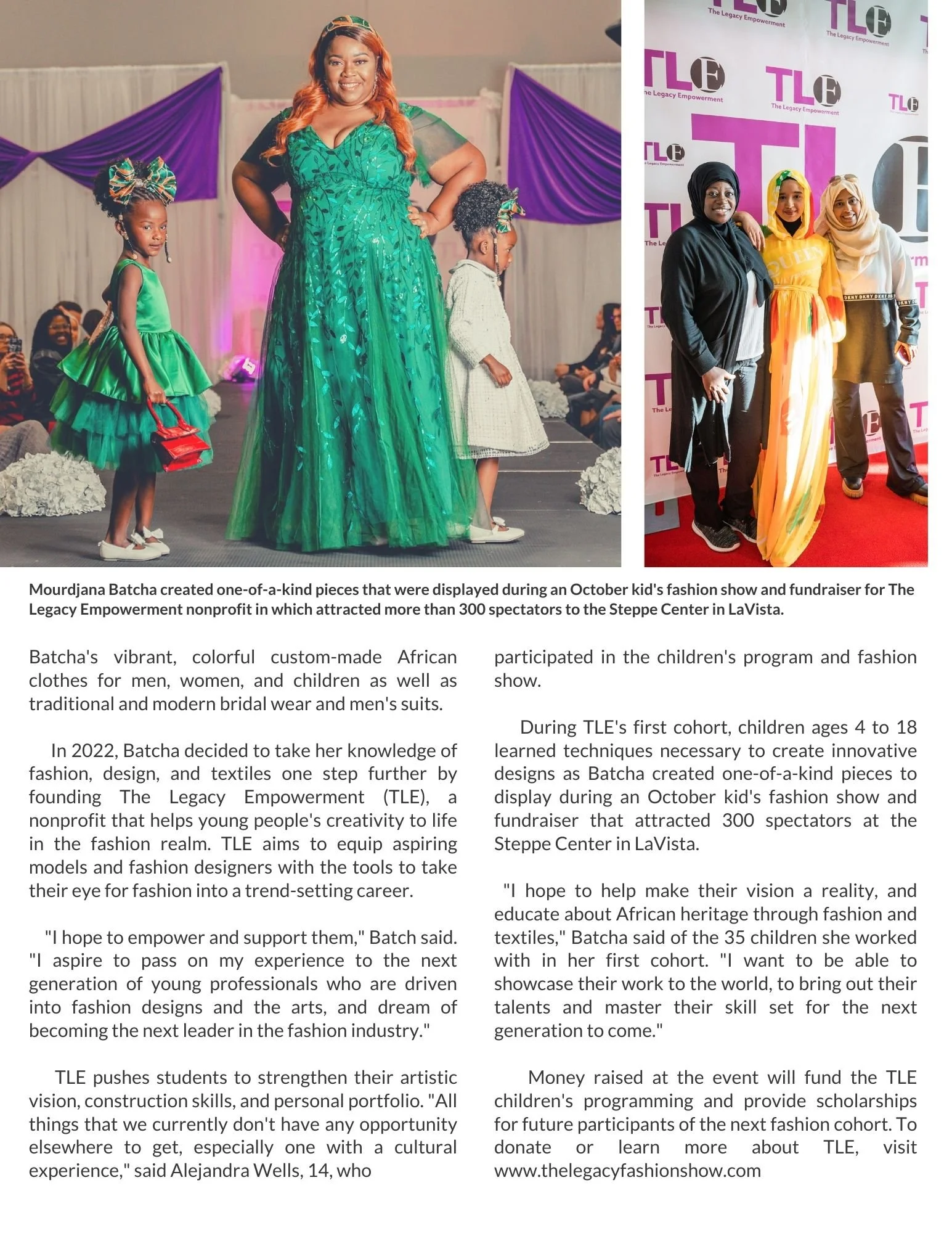 To learn more about The Legacy Empowerment and how you can sponsor The Legacy Fashion Show, which is scheduled for April 29 in support of the nonprofit, click here.