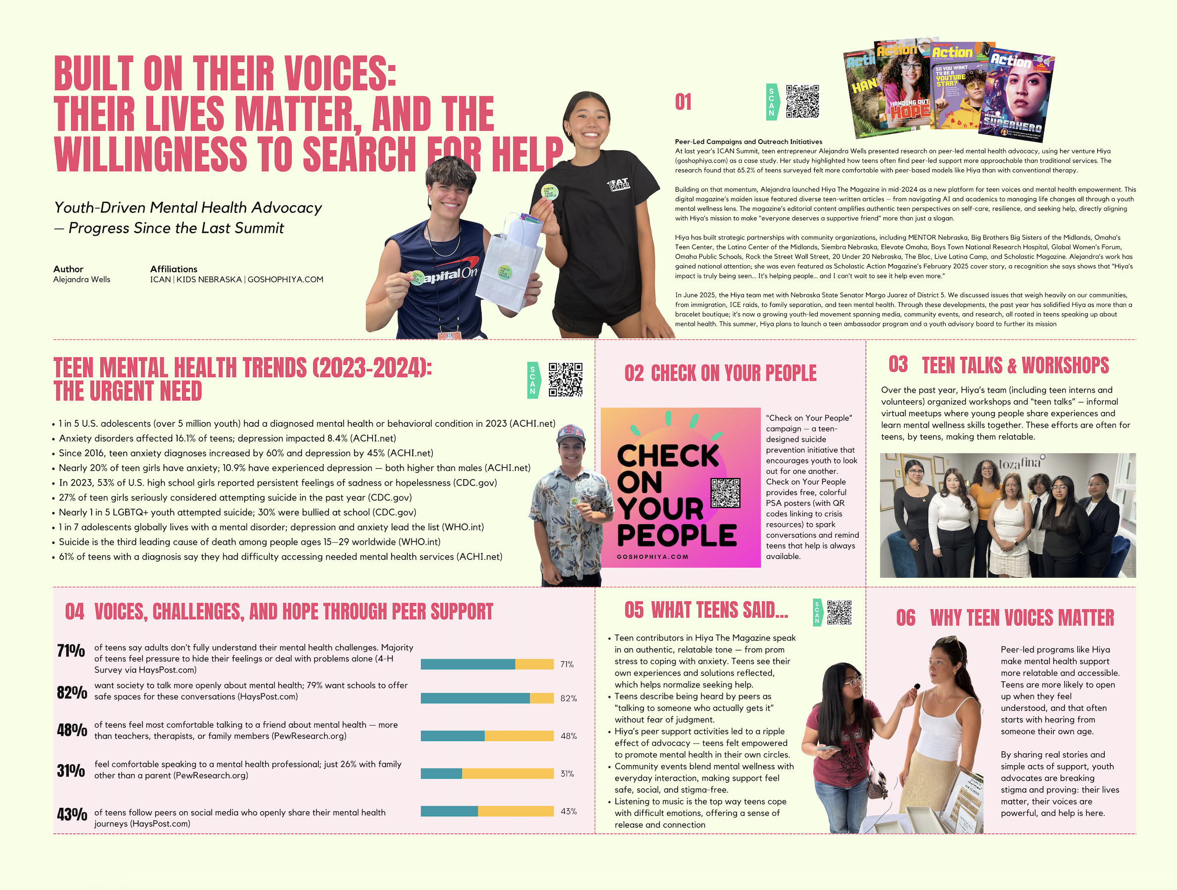 Alejandra Wells, teen entrepreneur and founder of Hiya (GoShopHiya.com), is presenting her research on youth-led mental health advocacy at the 2025 ICAN Summit, an international conference unlike any other, dedicated to amplifying youth voice in science, wellness, and innovation.