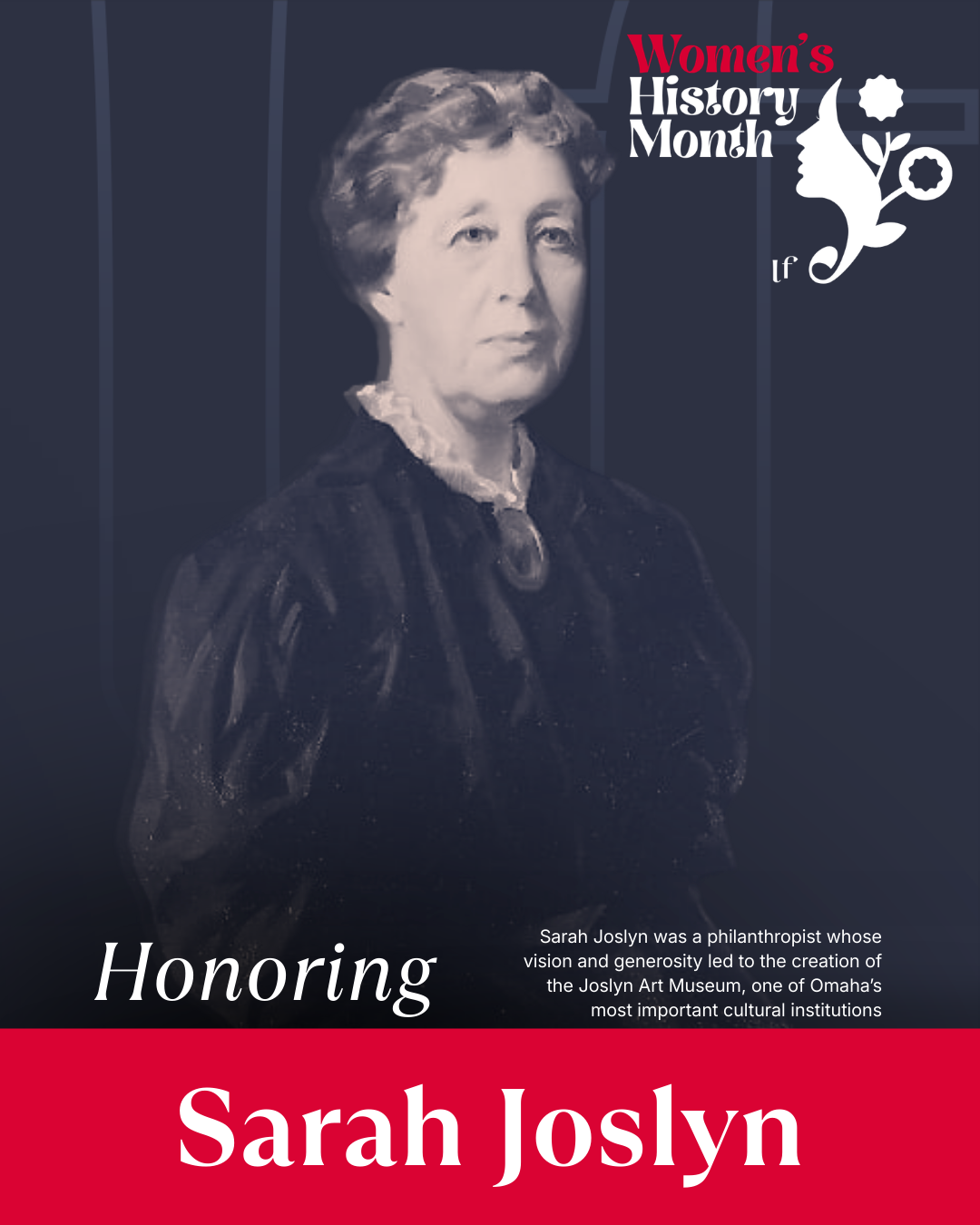 Sarah Joslyn believed that art and culture should belong to everyone. At a time when Omaha was still growing into a modern city, she helped ensure that future generations would have access to world-class art and a place where the community could gather, learn, and be inspired.