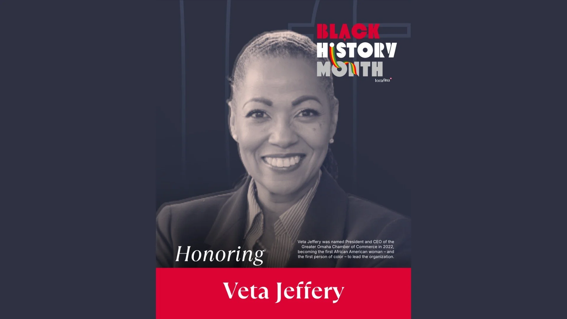 Veta Jeffery made history when she was named President and CEO of the Greater Omaha Chamber of Commerce in 2022, becoming the first African American woman – and the first person of color – to lead the organization in its more than 125-year history.